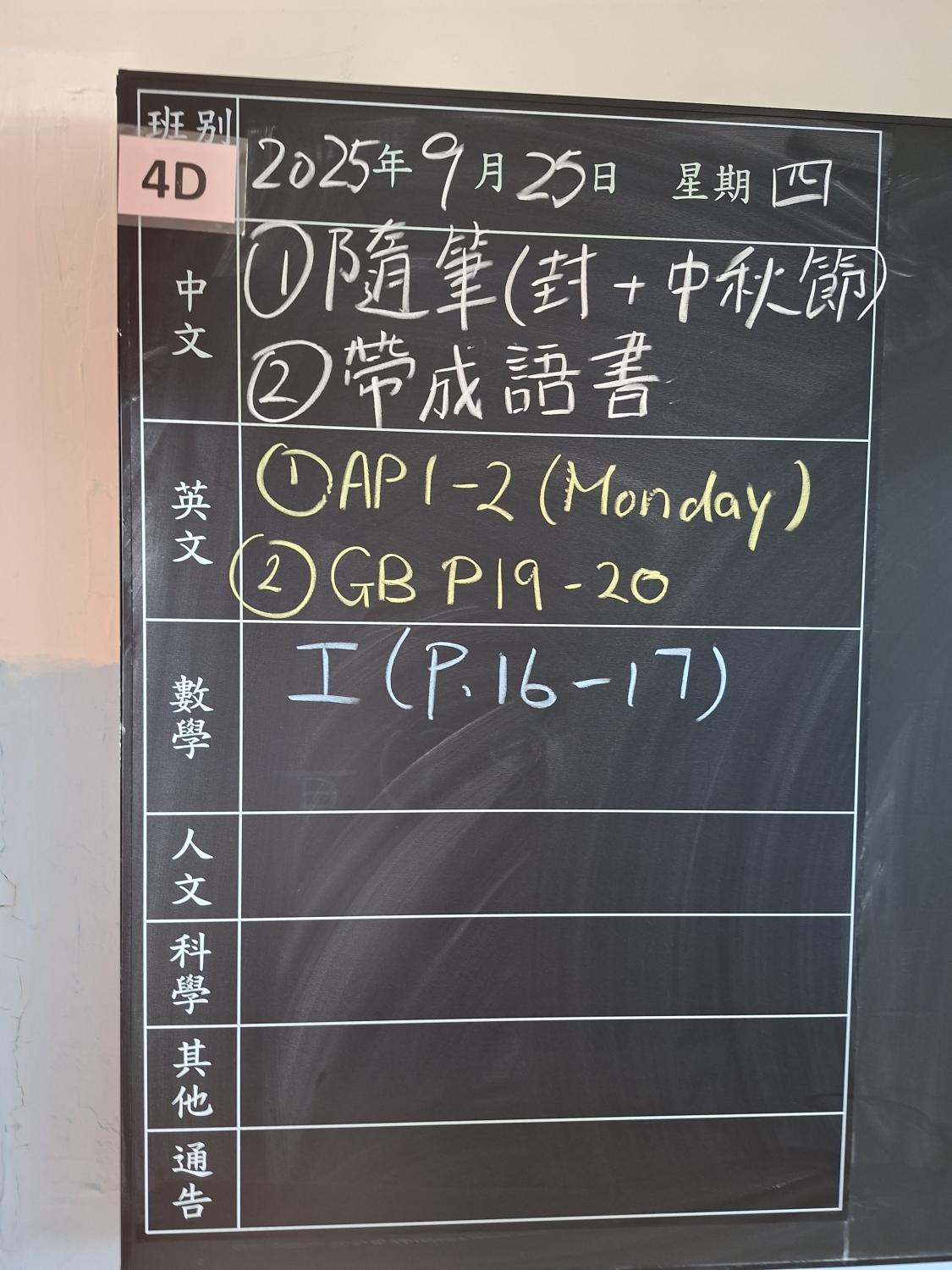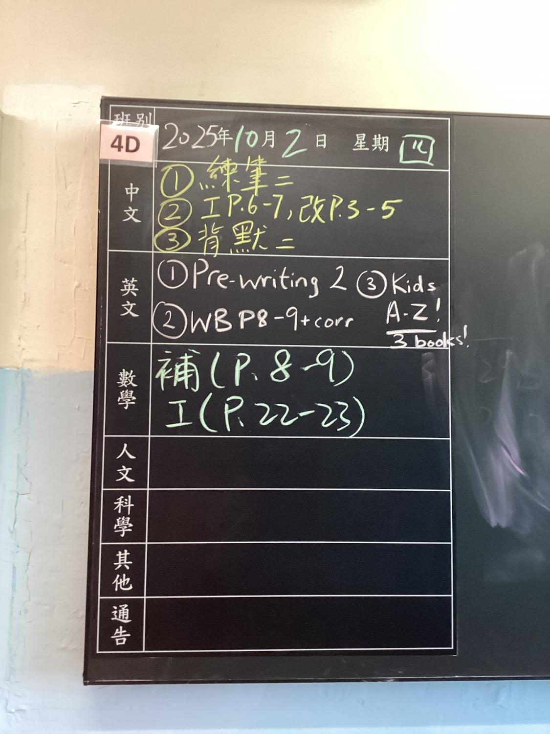 暫時沒有功課。 |