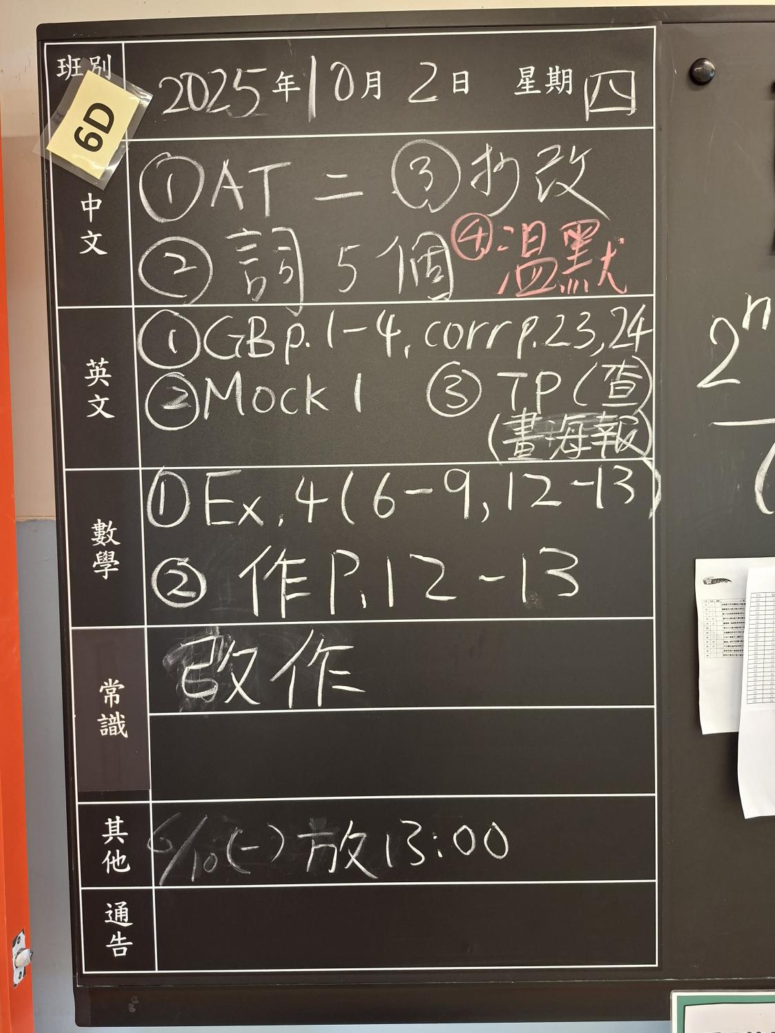 暫時沒有功課。 |